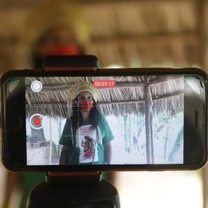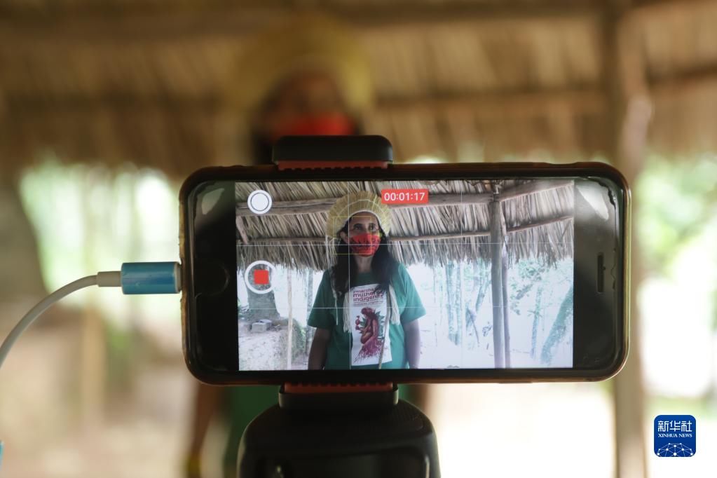 12月9日,巴西原住民中首位新冠疫苗接种者瓦努莎·凯姆贝在她位于瓜鲁柳斯市原住民村的家中接受新华社记者采访。新华社发(拉赫尔·帕特拉索摄)