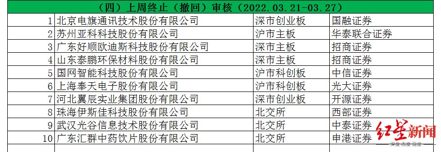 10家企业上周终止审核